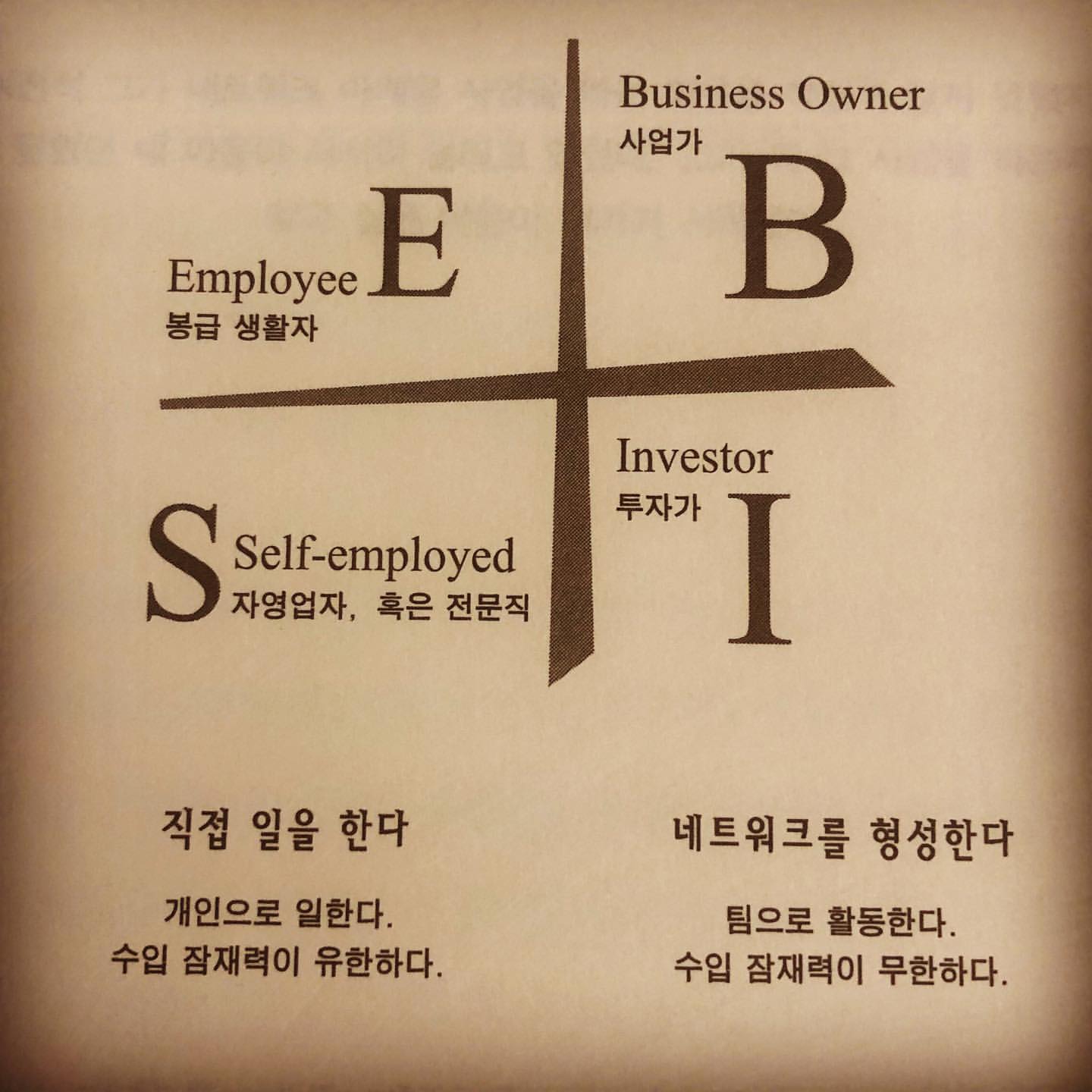 내가 표현한 이야기는 결국 유명한 책 부자아빠가난한아빠의 사분면에서 사분면의 왼쪽에서 오른쪽으로 넘어가는 부분을 표현한 것이다. 좀 더 이해하기 쉽게 표현한 그림들이다.