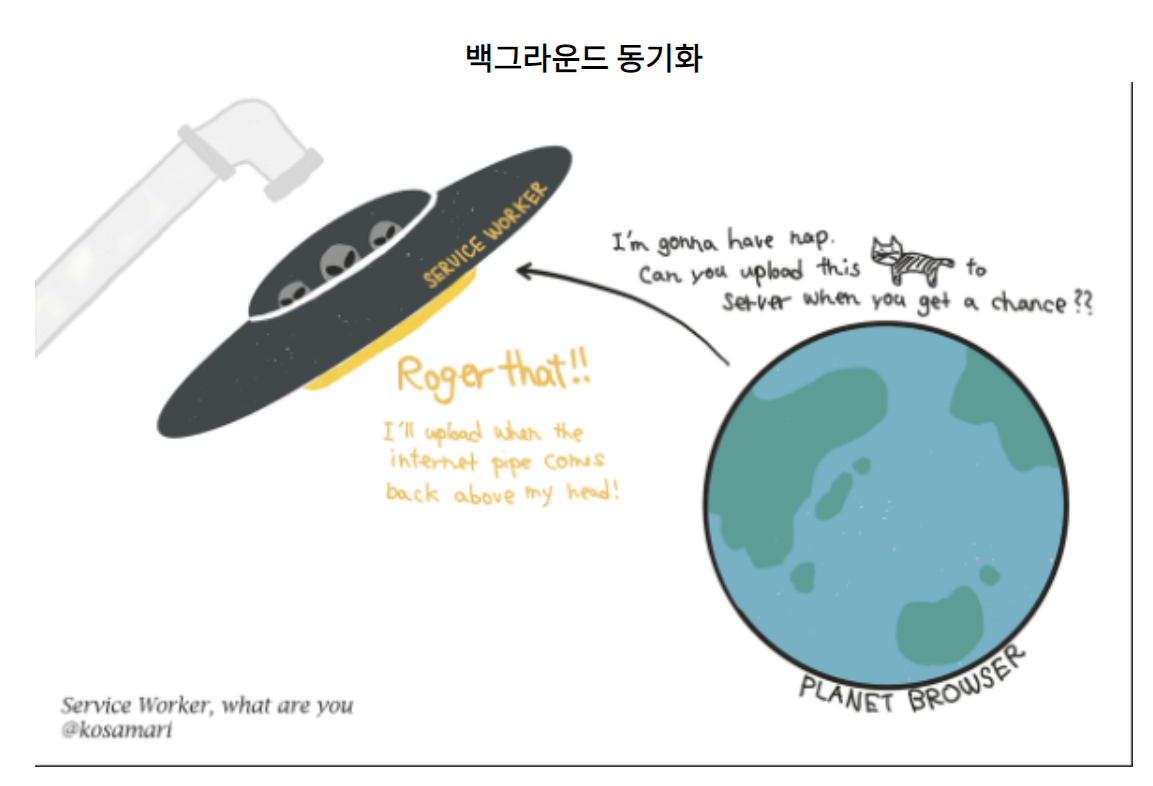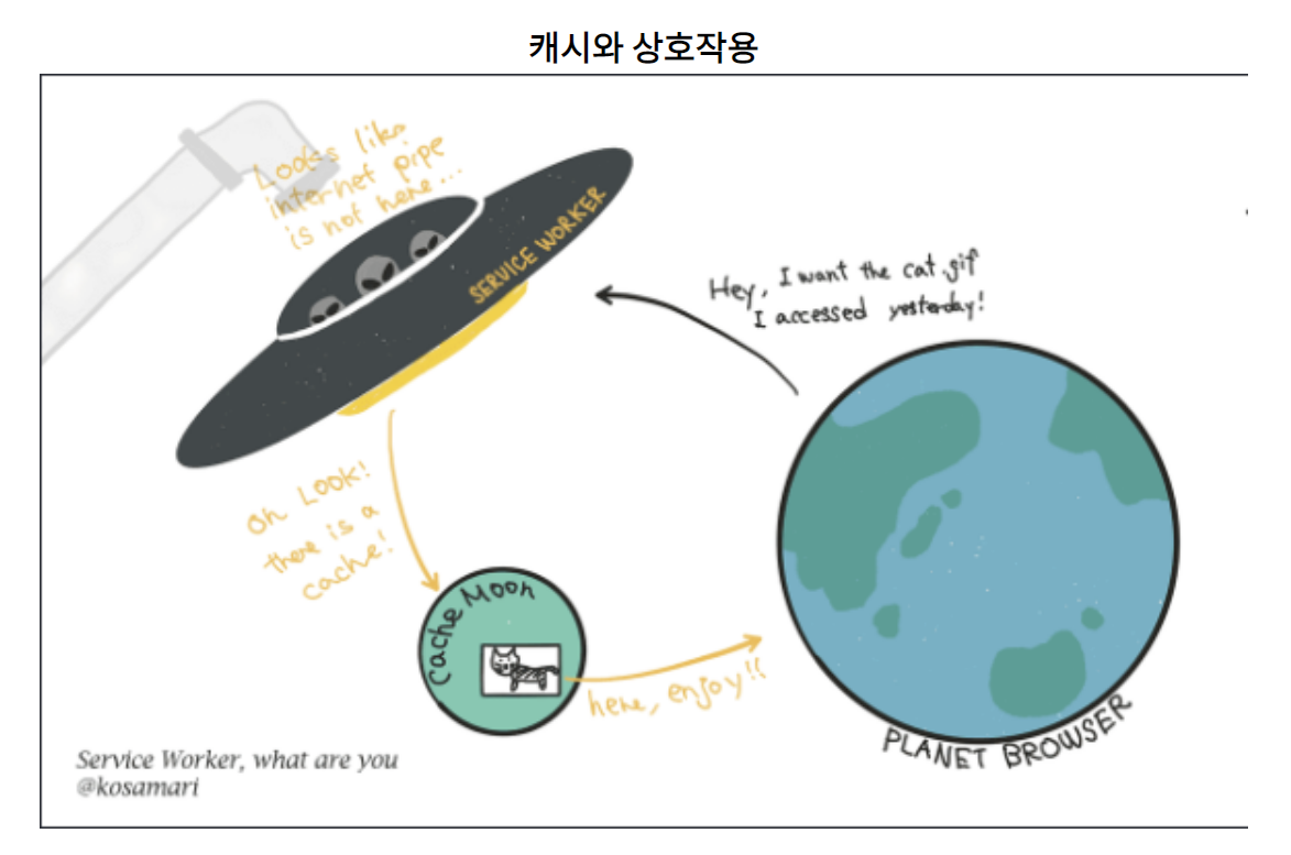 서비스 워커는 개발자에게 오프라인 환경을 통제할 수 있는 권한을 부여함으로써, 오프라인 환경에서 캐시와의 상호작용, 백그라운드 동기화, 푸시 알림 등의 기능을 가능하게 하였다.