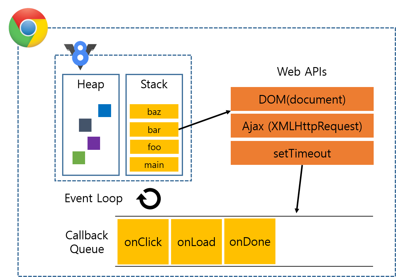 좌측 : 런타임 그림 / 우측 JavaScript Chrom Rutime