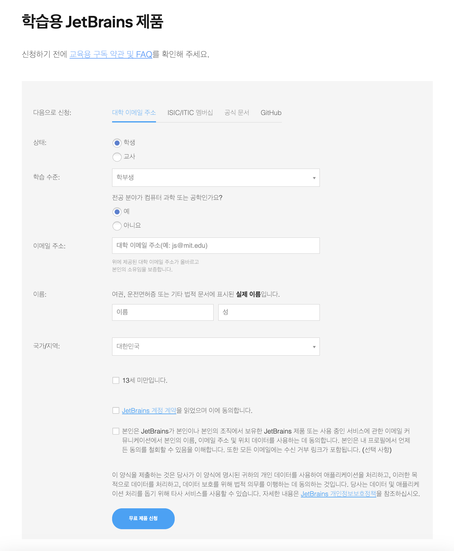 [IntelliJ] 손쉽게 인텔리제이 학생 인증 방법 하고 유료버전을 무료버전으로 사용하는 방법 본문