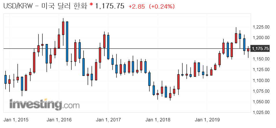 그렇기에 요즘은 환율자체도 상당히 안정되어가고 있는 모습을 보여주는듯 한모습을 연출하고 있었다. 사실 몇일전 까지만 해도 안정되있던 환율은 최근 2~3일간 미중무역갈등이 다시 심화될수 있을것이라는 불안감에 외국의 자본들이 이탈할려는 모습을 보여줬다. 환율1200원까지의 원화가치의 하락과 한국증시의 외국인 매도세가 불안감을 표출하는 모습이였다.